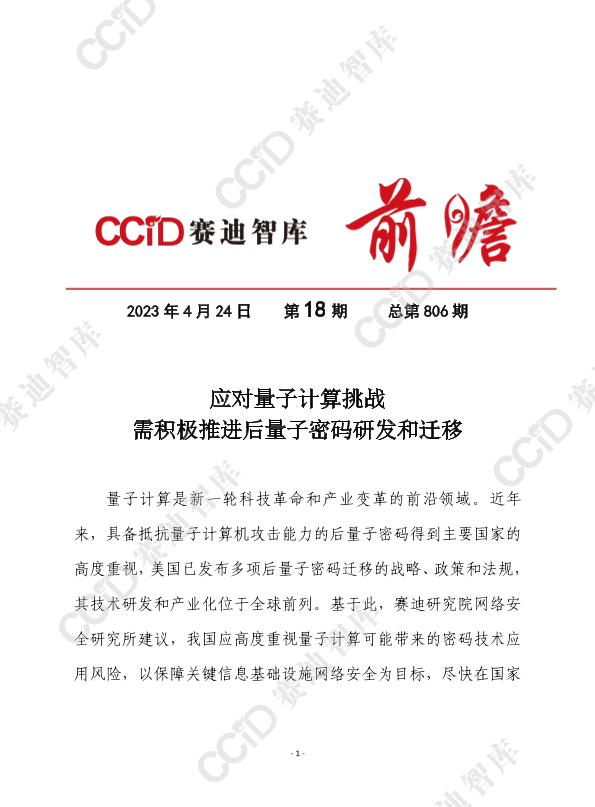 【赛迪研究院网络安全研究所】【20230424】应对量子计算挑战需积极推进后量子密码研发和迁移-12页