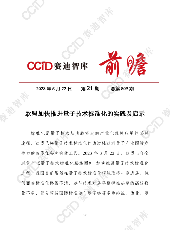 【赛迪研究院科技与标准研究所】【20230522】欧盟加快推进量子技术标准化的实践及启示-12页
