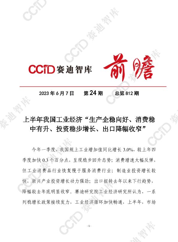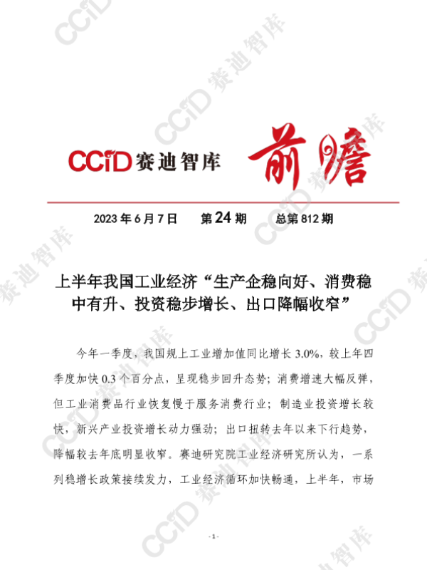 【赛迪研究院工业经济研究所】【20230607】上半年我国工业经济“生产企稳向好、消费稳中有升、投资稳步增长、出口降幅收窄”-10页