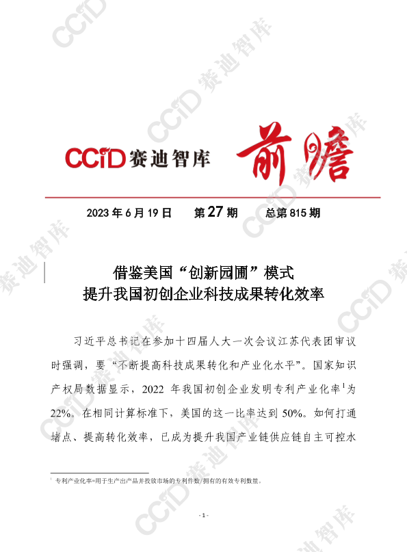 【赛迪研究院规划研究所】【20230619】借鉴美国“创新园圃”模式提升我国初创企业科技成果转化效率-9页