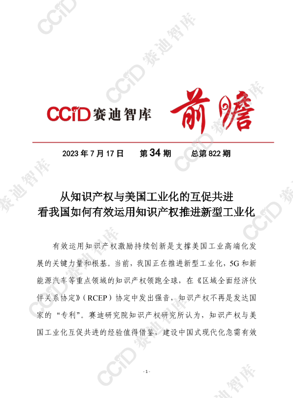【赛迪研究院知识产权研究所】【20230717】从知识产权与美国工业化的互促共进看我国如何有效运用知识产权推进新型工业化-10页
