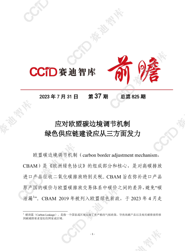 【赛迪研究院节能与环保研究所】【20230731】应对欧盟碳边境调节机制 绿色供应链建设应从三方面发力-9页