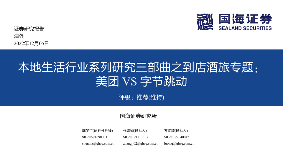 【国海证券】【20221205】本地生活行业系列研究三部曲之到店酒旅专题:美团VS字节跳动-40页