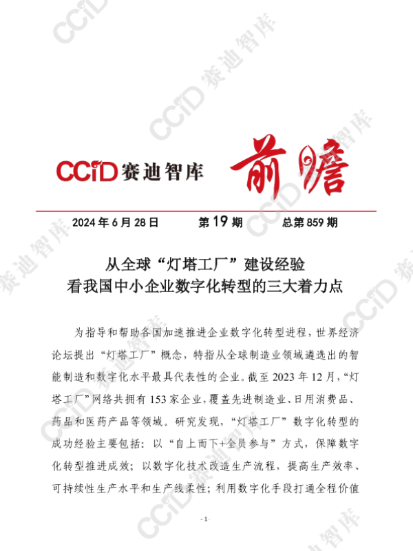 【世界经济论坛】【20240628】从全球“灯塔工厂”建设经验看我国中小企业数字化转型的三大着力点-9页