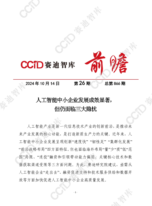 【赛迪研究院】【20241014】人工智能中小企业发展成效显著,但仍面临三大隐忧-9页