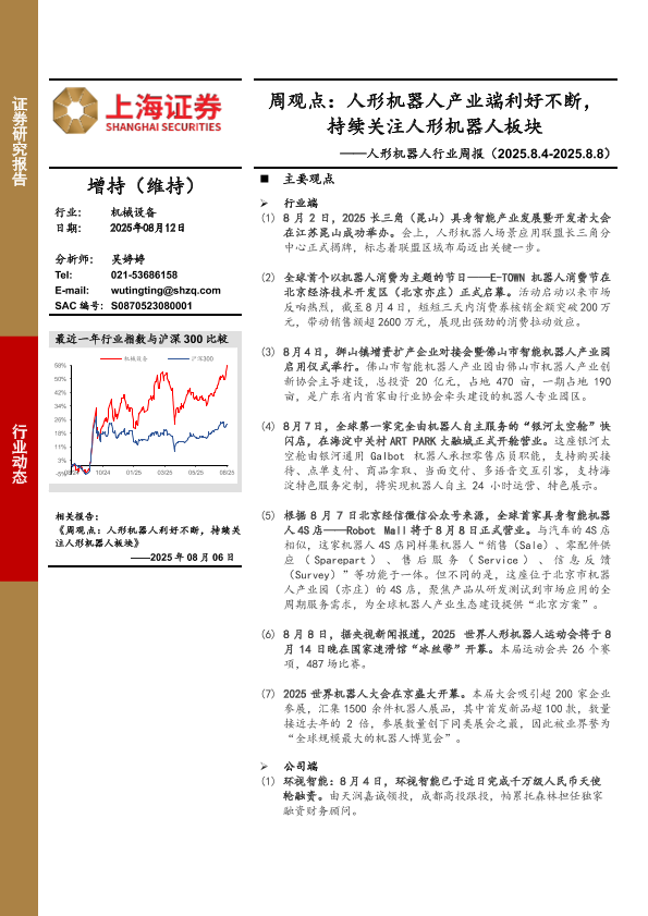 【上海证券】【20250812】人形机器人行业周报:周观点,人形机器人产业端利好不断,持续关注人形机器人板块-4页