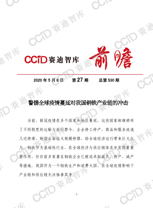 【赛迪智库】【20200506】警惕全球疫情蔓延对我国钢铁产业链的冲击-7页