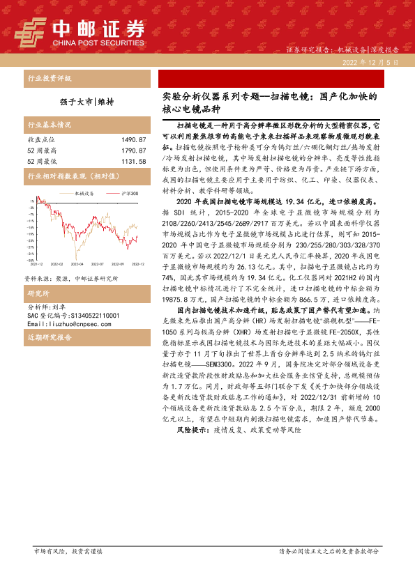 【中邮证券】【20221205】机械设备实验分析仪器系列专题--扫描电镜:国产化加快的核心电镜品种-17页