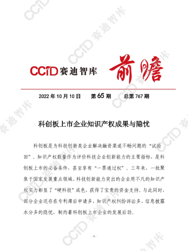 【赛迪智库】【2022】科创板上市企业知识产权成果与隐忧-10页