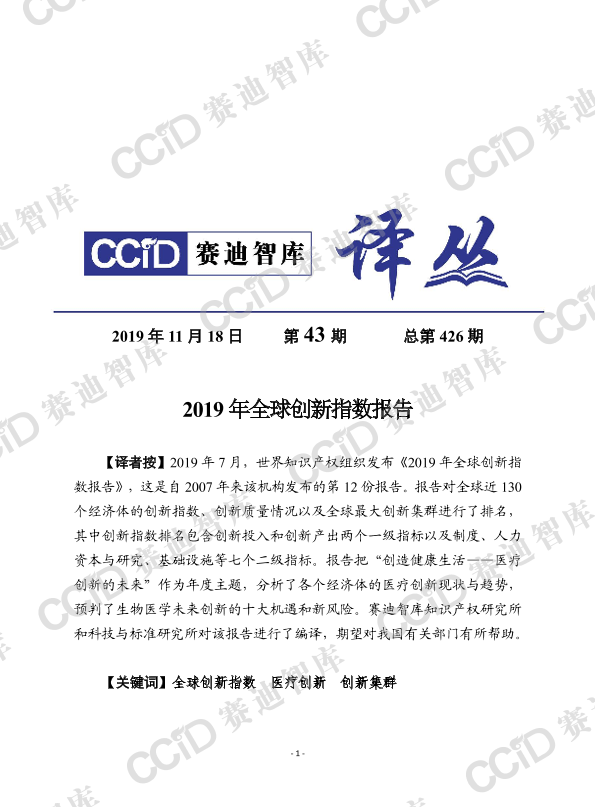 创新集群 中国经济 全球创新指数 医疗创新 创新投入产出
