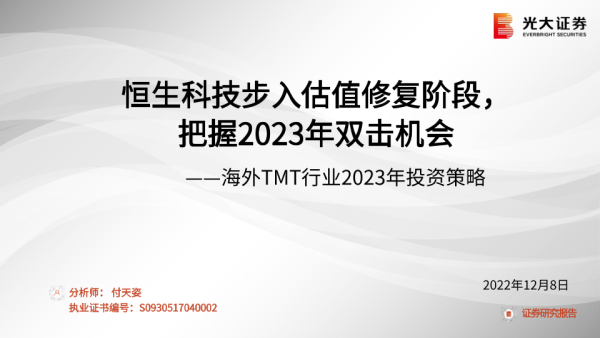 【光大证券】【20221208】海外TMT行业2023年投资策略:恒生科技步入估值修复阶段,把握2023年双击机会-85页