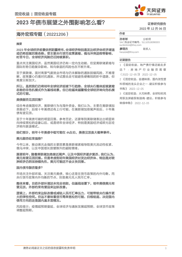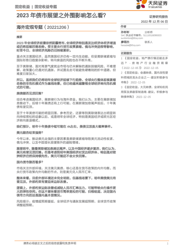 【天风证券】【20221206】2023年债市展望之外围影响怎么看?-21页