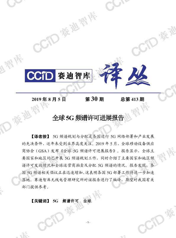 5G 全球进展 频段拍卖 频谱许可 电信行业
