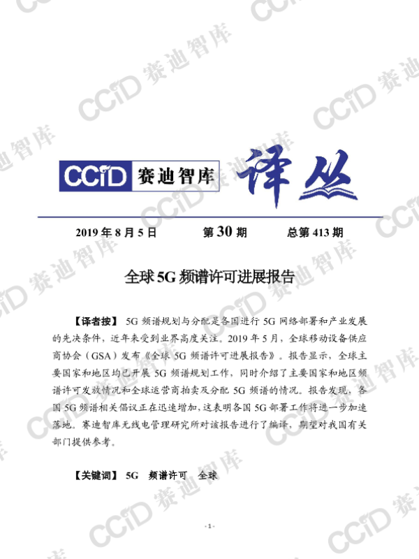 【全球移动设备供应商协会(GSA)】【201905】全球5G频谱许可进展报告-23页