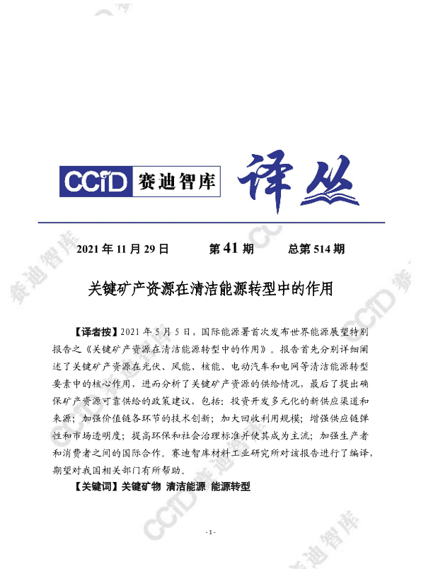 【国际能源署】【20210505】关键矿产资源在清洁能源转型中的作用-24页