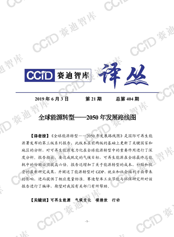 【国际可再生能源署】【20190603】全球能源转型——2050年发展路线图-23页