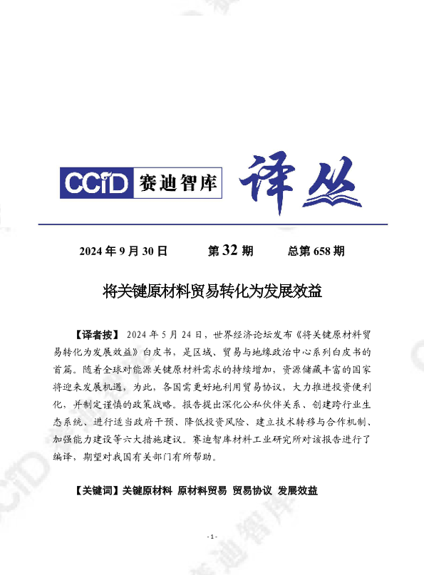 贸易协议 能源转型 关键原材料 发展效益 原材料贸易