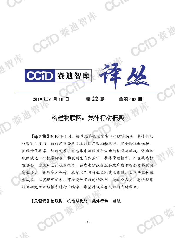 【世界经济论坛】【201901】构建物联网:集体行动框架-23页