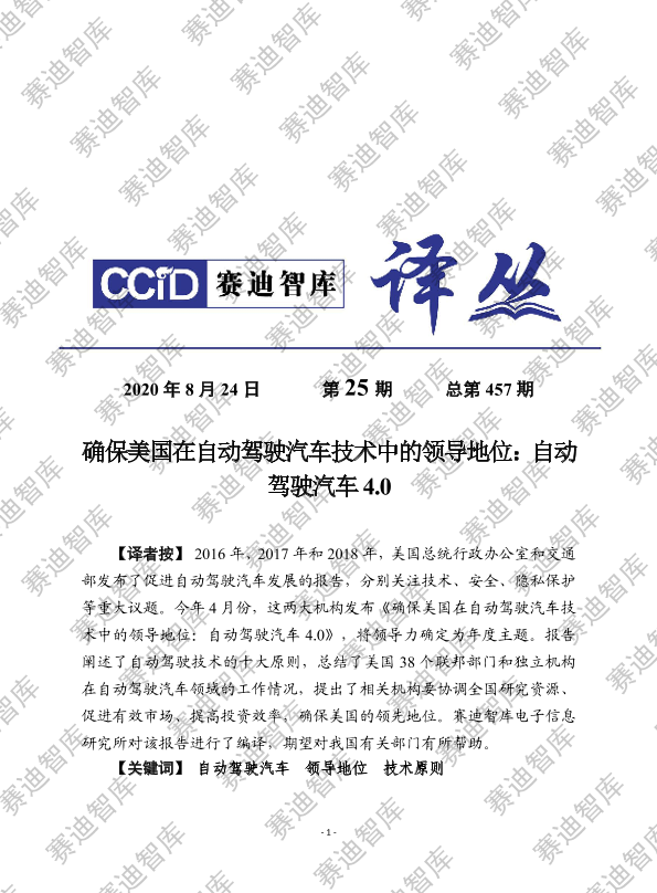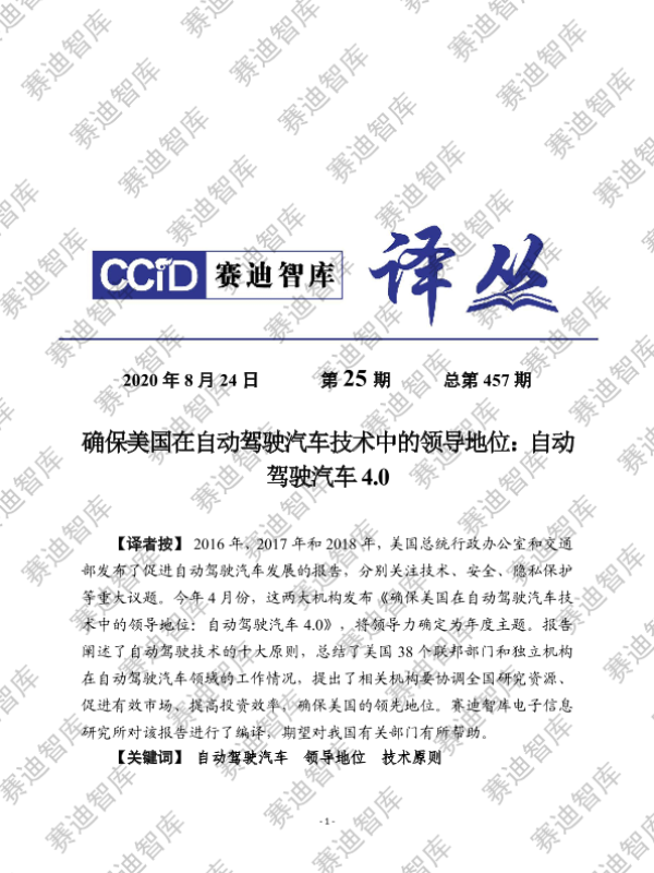 【美国总统行政办公室和交通部】【20200824】确保美国在自动驾驶汽车技术中的领导地位:自动驾驶汽车4.0-29页