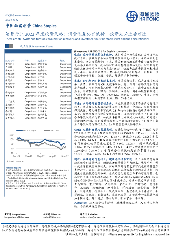 【海通国际】【20221204】消费行业2023年度投资策略:消费恢复仍有波折,投资先必选后可选-42页