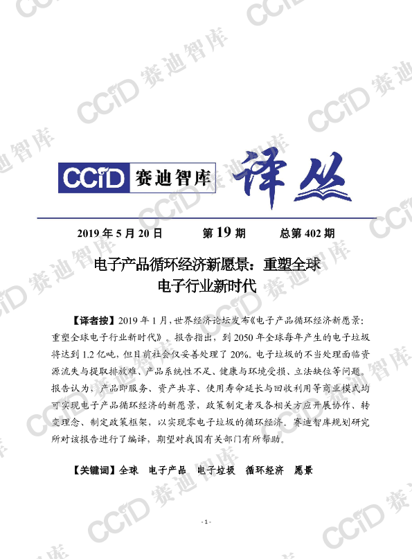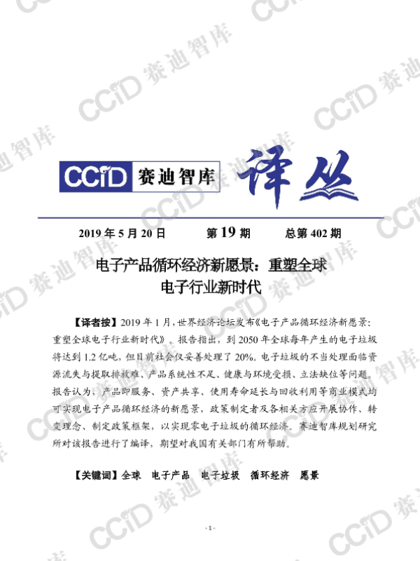 【世界经济论坛】【201901】电子产品循环经济新愿景:重塑全球电子行业新时代-27页