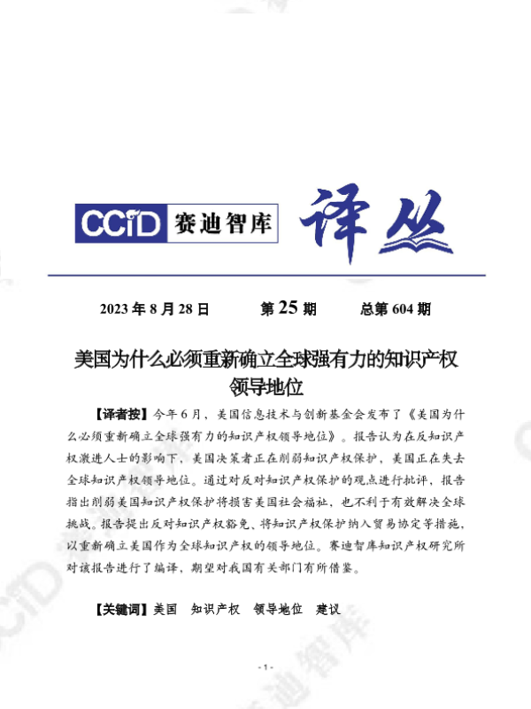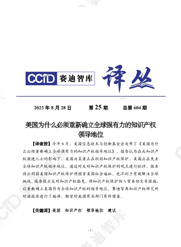 【美国信息技术与创新基金会】【202306】美国为什么必须重新确立全球强有力的知识产权领导地位-24页