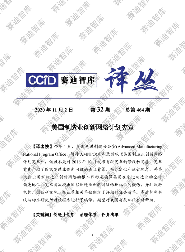【美国先进制造办公室 (Advanced Manufacturing National Program Office,简称 AMNPO)】【20201102】美国制造业创新网络计划宪章-16页