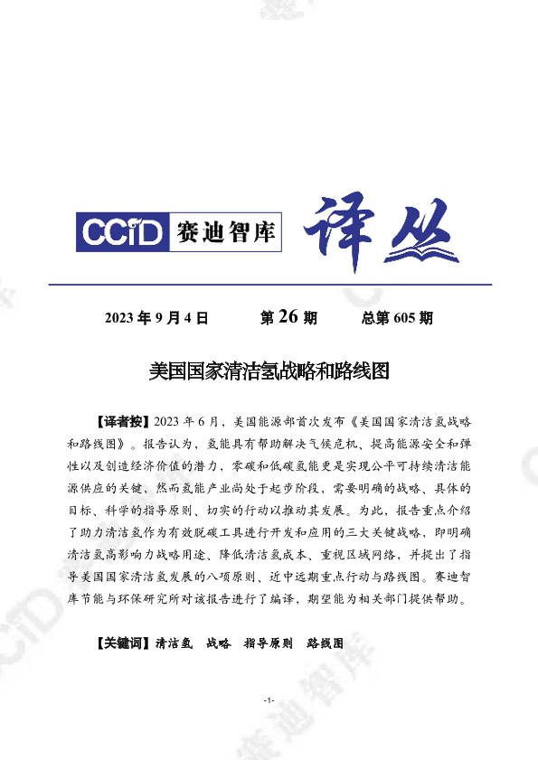 【美国能源部】【202306】美国国家清洁氢战略和路线图-20页