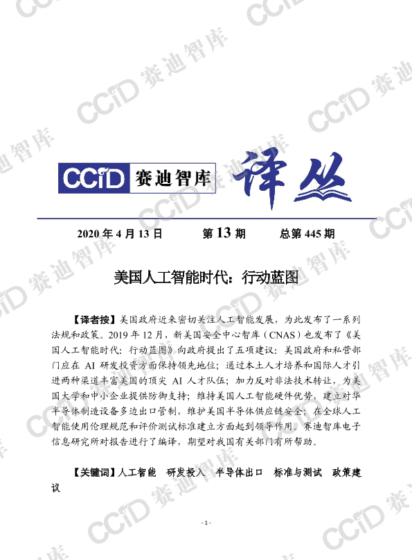 【新美国安全中心智库(CNAS)】【201912】美国人工智能时代:行动蓝图-25页