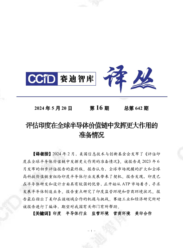 【美国信息技术与创新基金会】【20240520】评估印度在全球半导体价值链中发挥更大作用的准备情况-28页