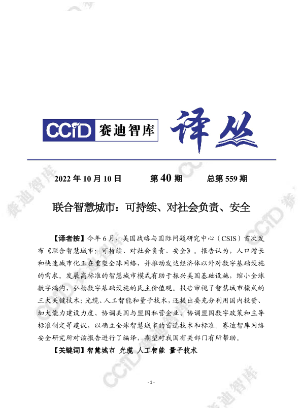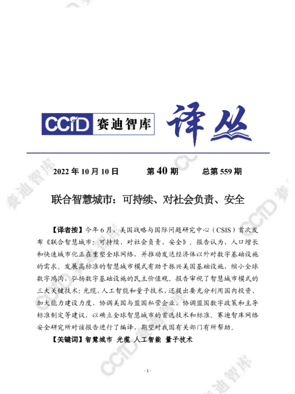 【美国战略与国际问题研究中心(CSIS)】【2022】联合智慧城市:可持续、对社会负责、安全-28页