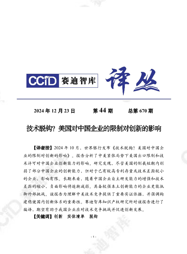 【赛迪智库知识产权研究所】【20241223】技术脱钩?美国对中国企业的限制对创新的影响-20页