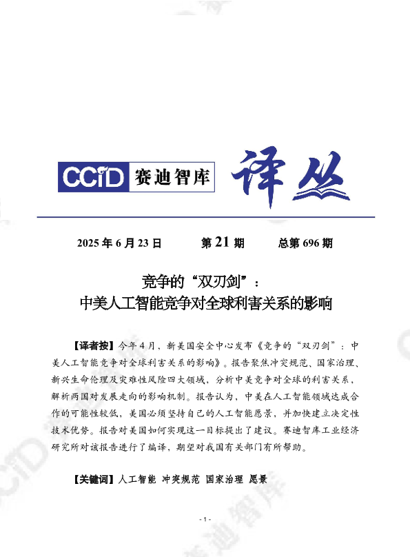 【新美国安全中心】【202506】竞争的“双刃剑”:中美人工智能竞争对全球利害关系的影响-24页