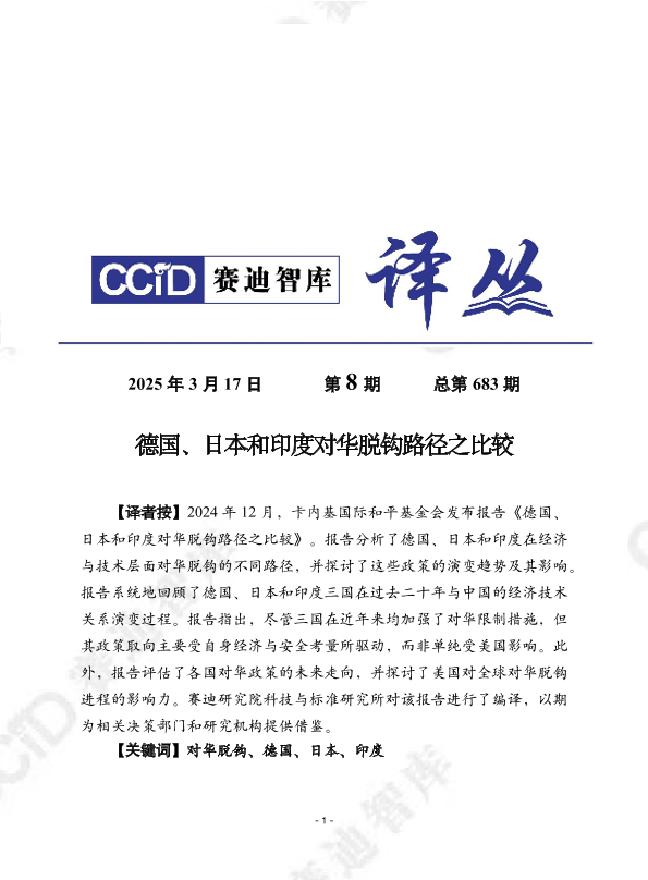【卡内基国际和平基金会】【202412】德国、日本和印度对华脱钩路径之比较-28页