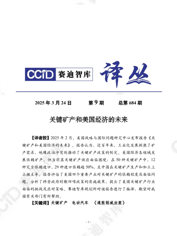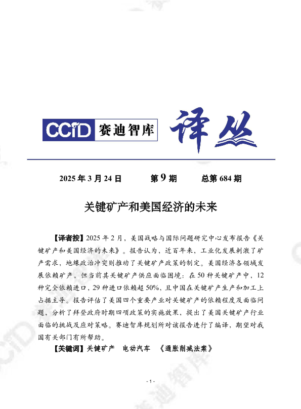 供应链 关键矿产 电动汽车 美国经济 《通胀削减法案》