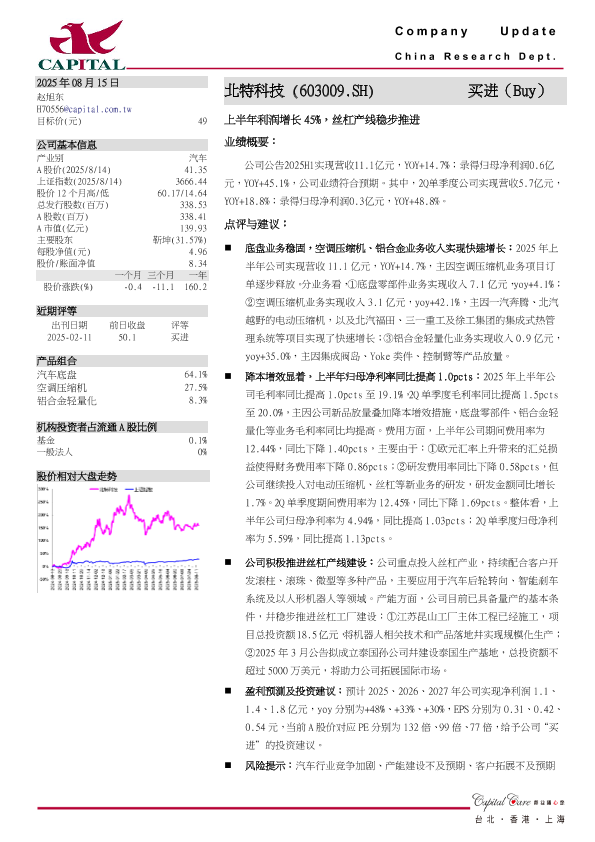 【群益证券】【20250815】北特科技-603009.SH-上半年利润增长45_丝杠产线稳步推进-3页