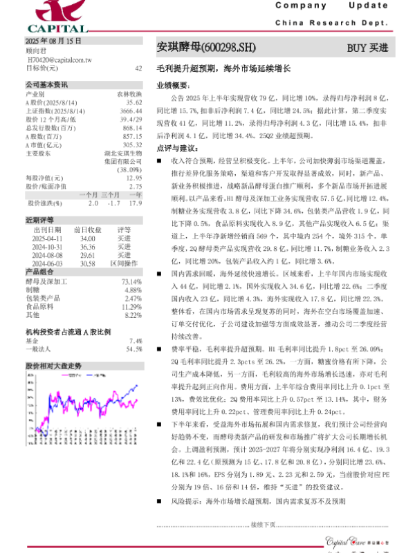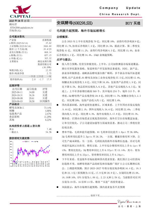 【群益证券】【20250815】安琪酵母-毛利提升超预期_海外市场延续增长-3页