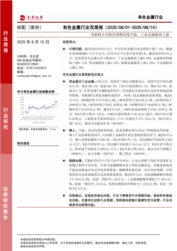 【东莞证券】【20250815】有色金属行业双周报-13页