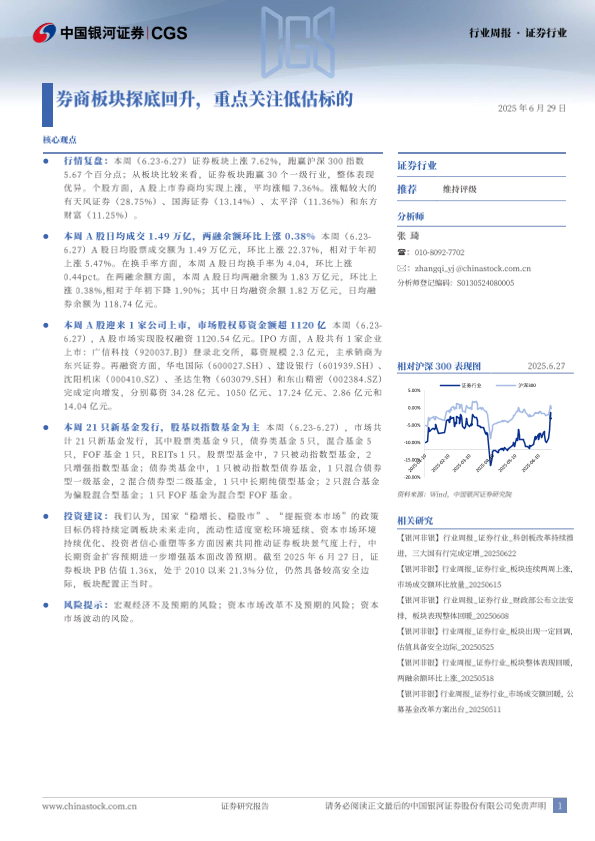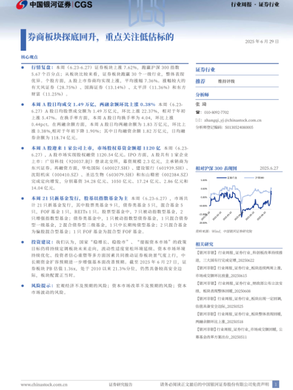 【银河证券】【20250629】证券行业行业周报:券商板块探底回升,重点关注低估标的-13页