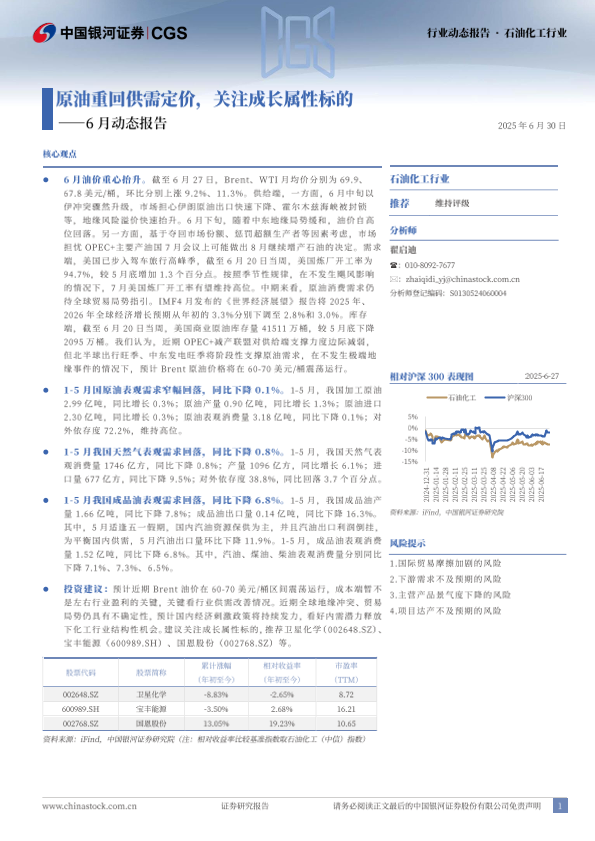 【银河证券】【20250630】石油化工行业6月动态报告:原油重回供需定价,关注成长属性标的-22页