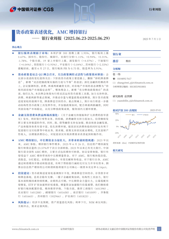 【银河证券】【20250701】银行业周报:货币政策表述优化,AMC增持银行-21页