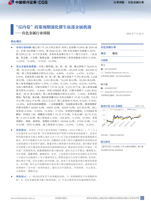 【银河证券】【20250720】有色金属行业周报:“反内卷”政策预期强化催生底部金属机遇-19页