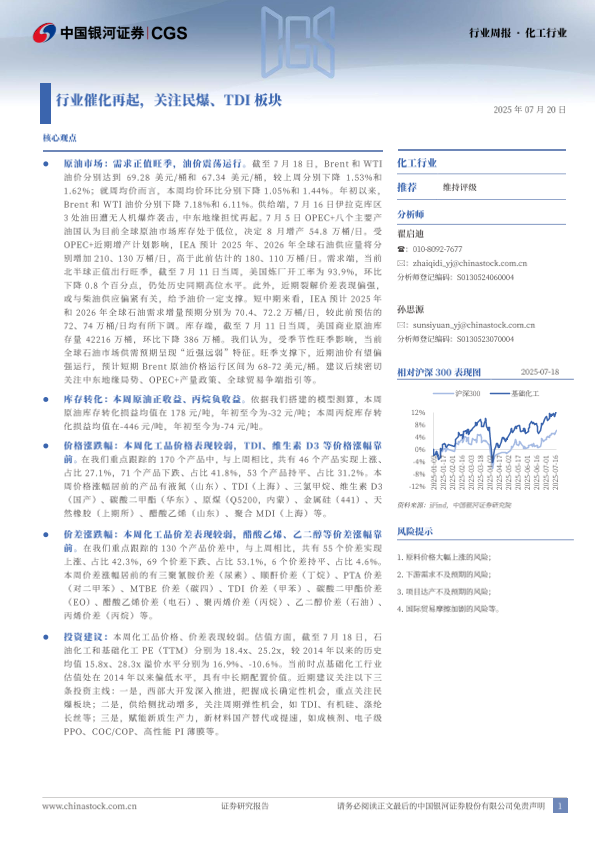 【银河证券】【20250720】化工行业周报:行业催化再起,关注民爆、TDI板块-19页