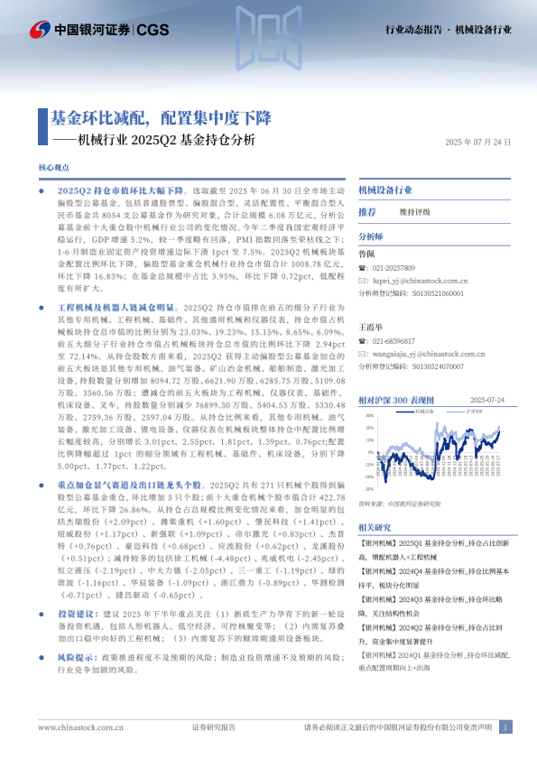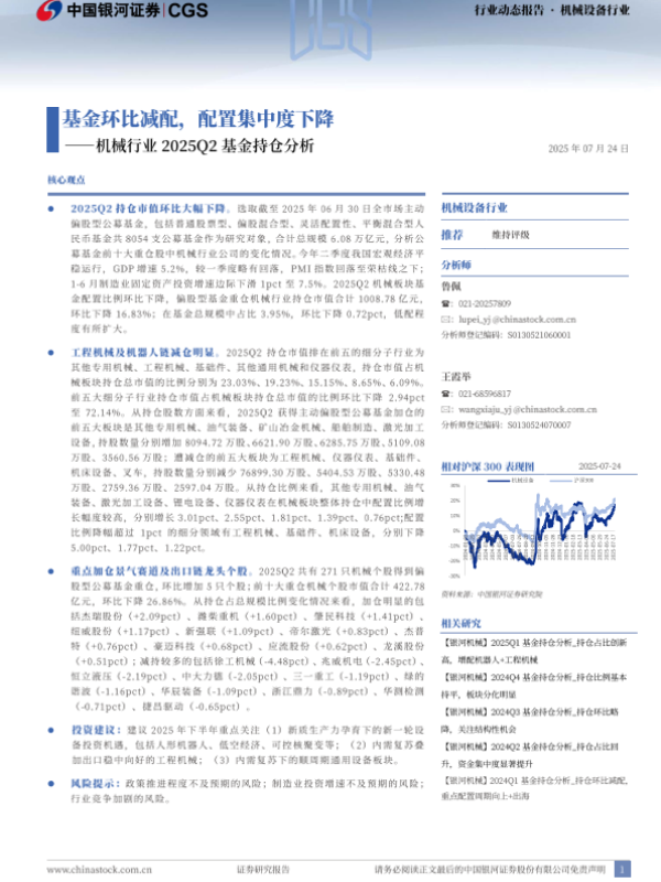 【银河证券】【20250724】机械行业2025Q2基金持仓分析:基金环比减配,配置集中度下降-11页