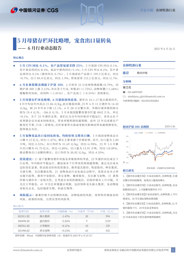 CPI 农业指数 农产品贸易 宠食出口 母猪存栏