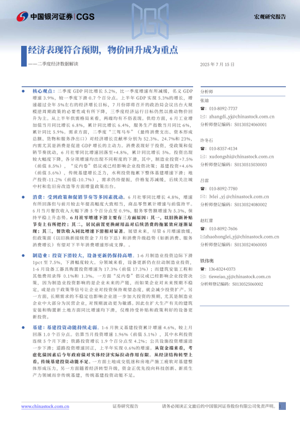 【银河证券】【20250715】一二季度经济数据解读:经济表现符合预期,物价回升成为重点-14页