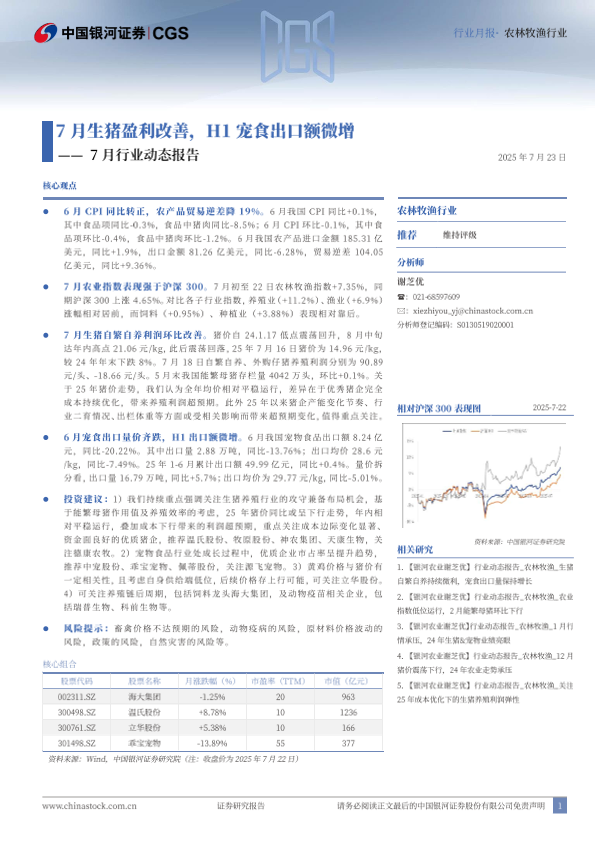 【银河证券】【20250723】农林牧渔7月行业动态报告-21页
