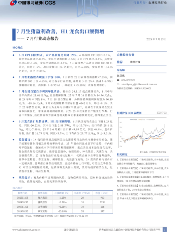CPI 农产品贸易 农林牧渔指数 宠物食品 生猪盈利