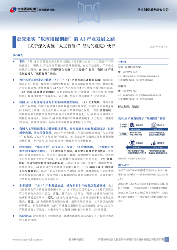 【银河证券】【20250804】关于深入实施“人工智能+”行动的意见 快评 走深走实 以应用促创新的AI产业发展之路-11页