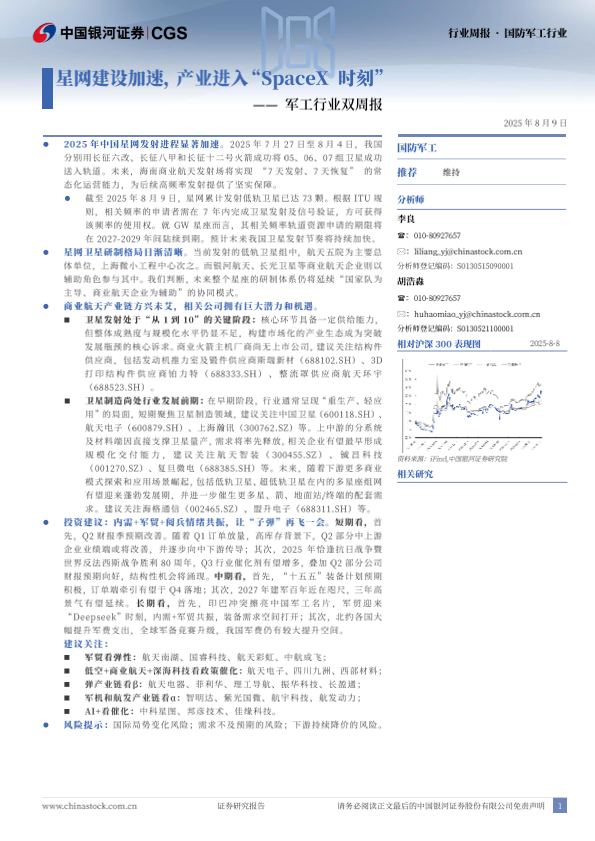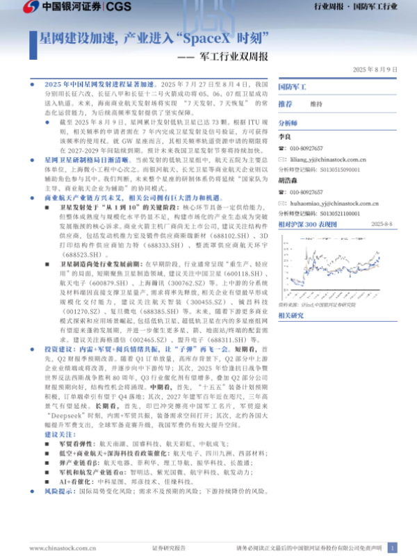 【银河证券】【20250809】军工行业双周报_星网建设加速_产业进入SpaceX时刻-15页